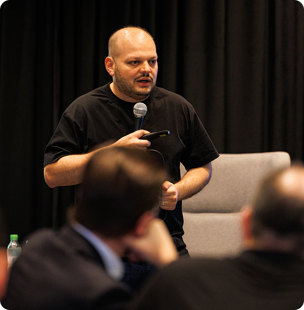No palco, Augusto não fala de tendências abstratas ou futuros hipotéticos. Ele fala do que viveu, investiu, executou e transformou. Sua autoridade não vem de teorias, mas de decisões reais, com capital próprio investido e impacto direto em P&L.